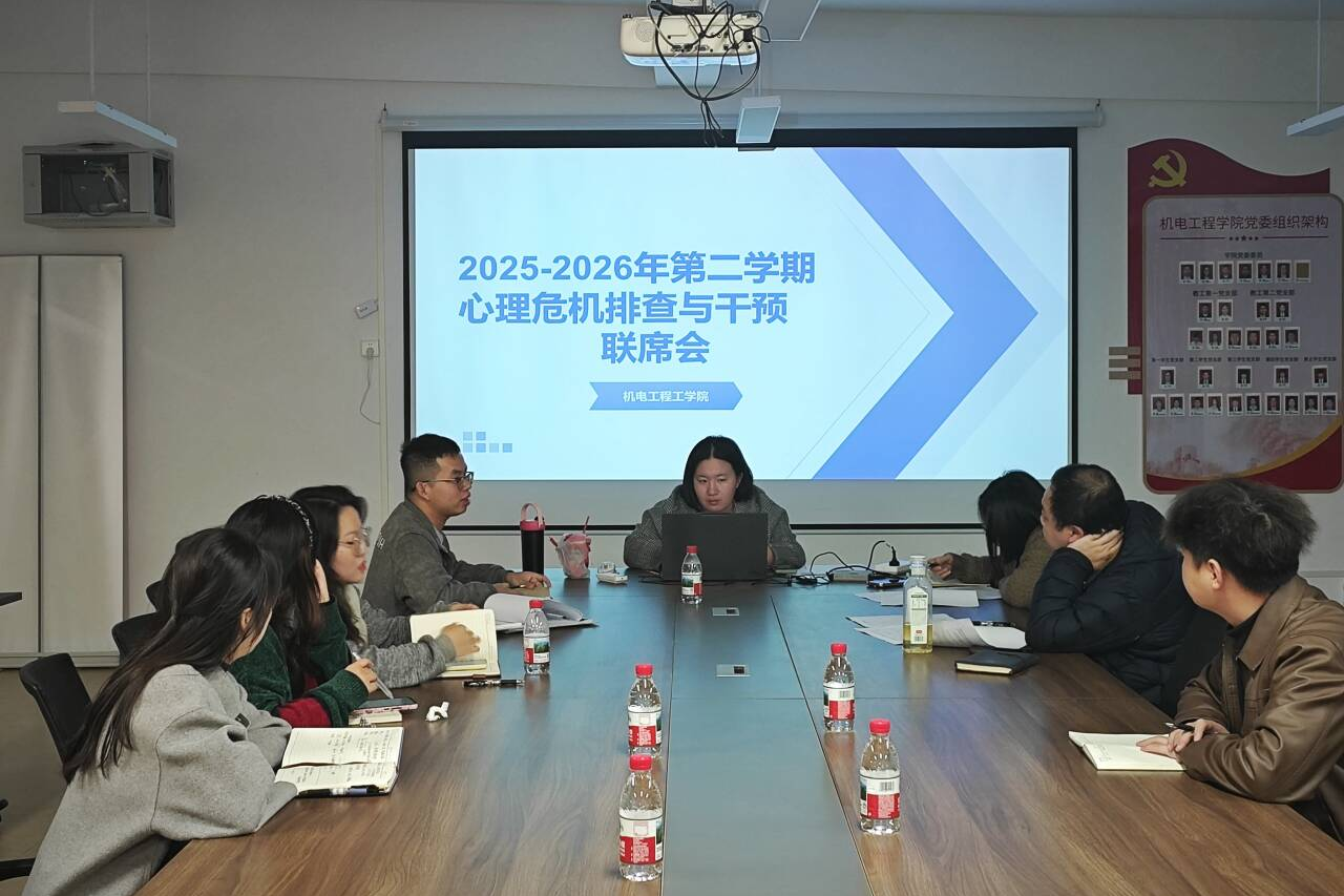 为精准掌握全体在校生开学阶段心理健康状态,筑牢校园心理安全防线,机电工程学院于近日组织全体在校生完成心理健康普测工作,并于3月20日在J706会议室召开2025-2026学年第二学期心理危机排查与干预联席会。学院党委书记文超、党委副书记严继玲、心理健康教育专职辅导员陈筱婕及全体年级辅导员出席会议。
