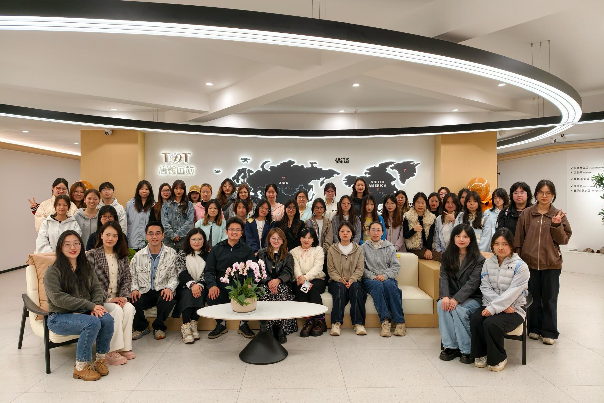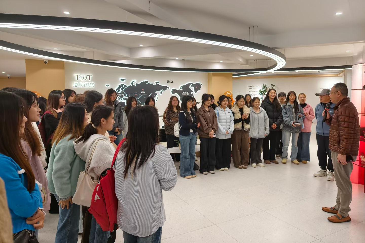 为精准对接文旅与跨境贸易领域人才需求,解锁就业“新赛道”,2026年3月27日下午,外贸与外语学院院长王家年、副院长赖安及商务英语、英语、酒店管理等专业负责人,带领国际文旅产业学院、跨境数字贸易产业学院36名学生,赴桂林唐朝国际旅行社开展实地学习,现场聆听《走进唐朝,认识入境游》主题讲座。