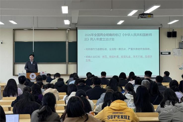 为深入贯彻落实立德树人根本任务,强化教师思想政治与师德师风建设,引导全体教职工坚守育人初心、规范从教行为,3月27日,商学院在D408教室召开2026年春季学期师德师风专题学习会,全院教职工参会学习。