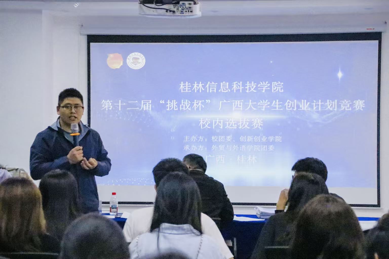 4月8日下午,beat365官网第十二届“挑战杯”广西大学生创业计划竞赛校内选拔赛在学校创新创业学院1楼综合大厅顺利举行。本次比赛由校团委、学校创新创业学院主办,外贸与外语学院团委承办,经过前期的网络评审,最终选出了15支优秀队伍参加线下路演。桂林医科大学宣传部副部长金罗成老师、学校党委教师工作部部长周文彬老师、学校团委书记周阳霖老师、学校创新创业学院副院长黄鹏老师、学校学生发展与服务中心副主任肖玲老师担任本次比赛的现场评委。