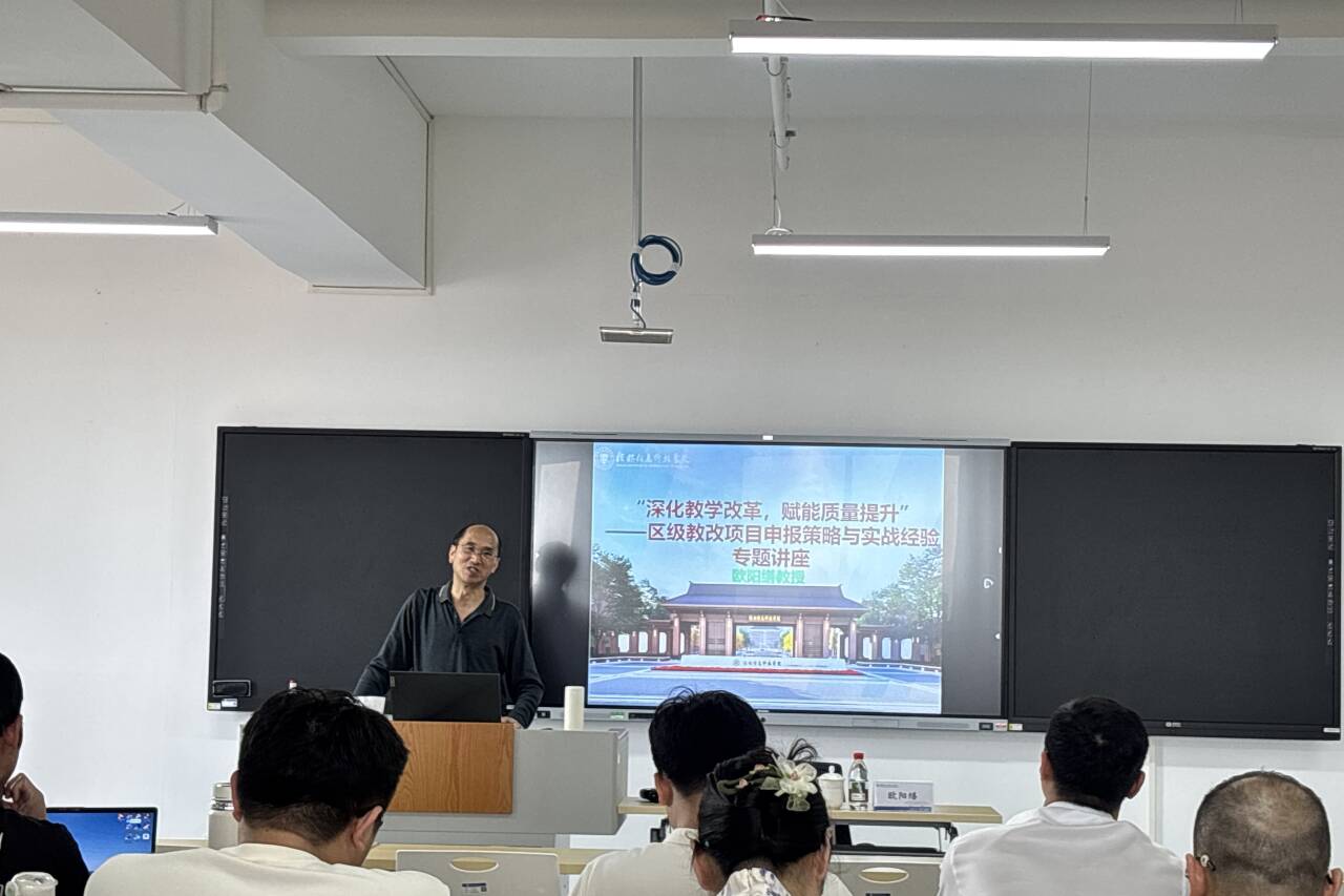 欧阳缮教授紧密结合区级教学改革项目的申报要求,围绕项目名称拟定、摘要撰写、教学问题剖析、创新方法设计及项目创新点提炼等核心环节展开系统阐述。他着重指出,项目名称需直击问题本质、表述精准凝练;摘要应清晰呈现研究问题、核心内容与预期目标;教学问题需层次分明,改革举措需具备针对性与实操性,创新点则需提炼精准、突出特色。
