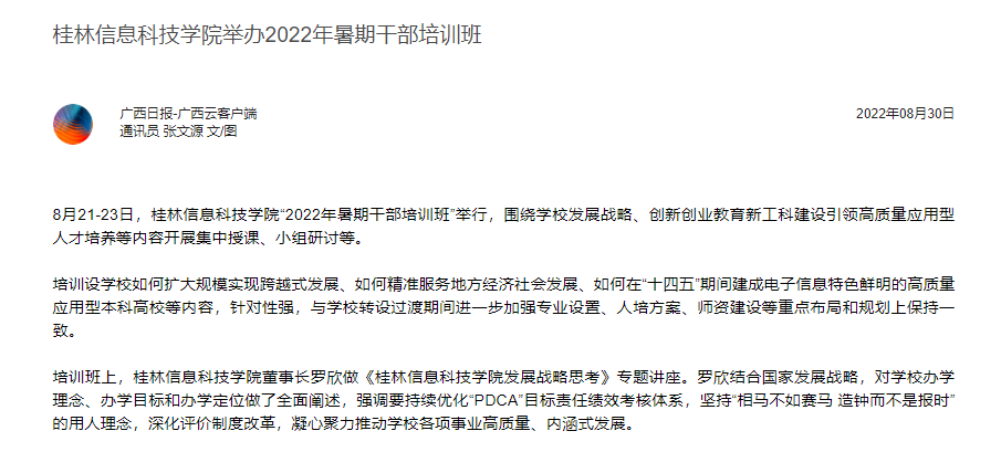 广西云客户端:beat365在线唯一官网举办2022年暑期干部培训班