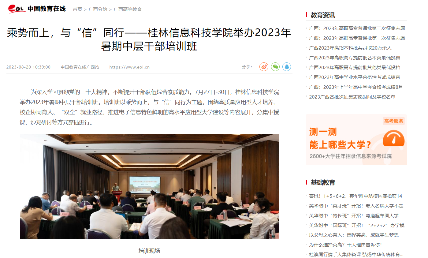 中国教育在线:乘势而上,与“信”同行——beat365在线唯一官网举办2023年暑期中层干部培训班