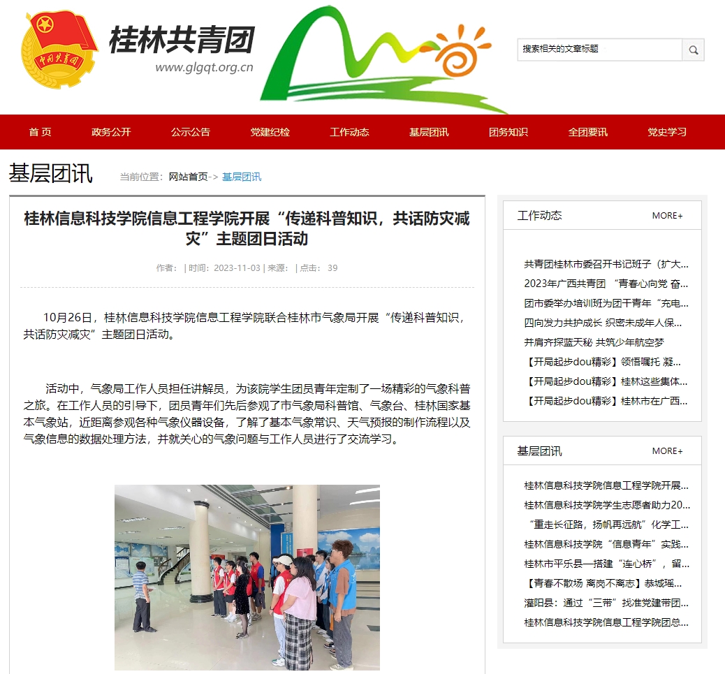 10月26日,beat365在线唯一官网信息工程学院联合桂林市气象局开展“传递科普知识,共话防灾减灾”主题团日活动。