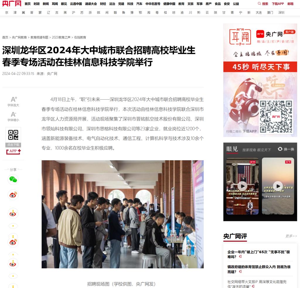央广网:深圳龙华区2024年大中城市联合招聘高校毕业生春季专场活动在beat365在线唯一官网举行