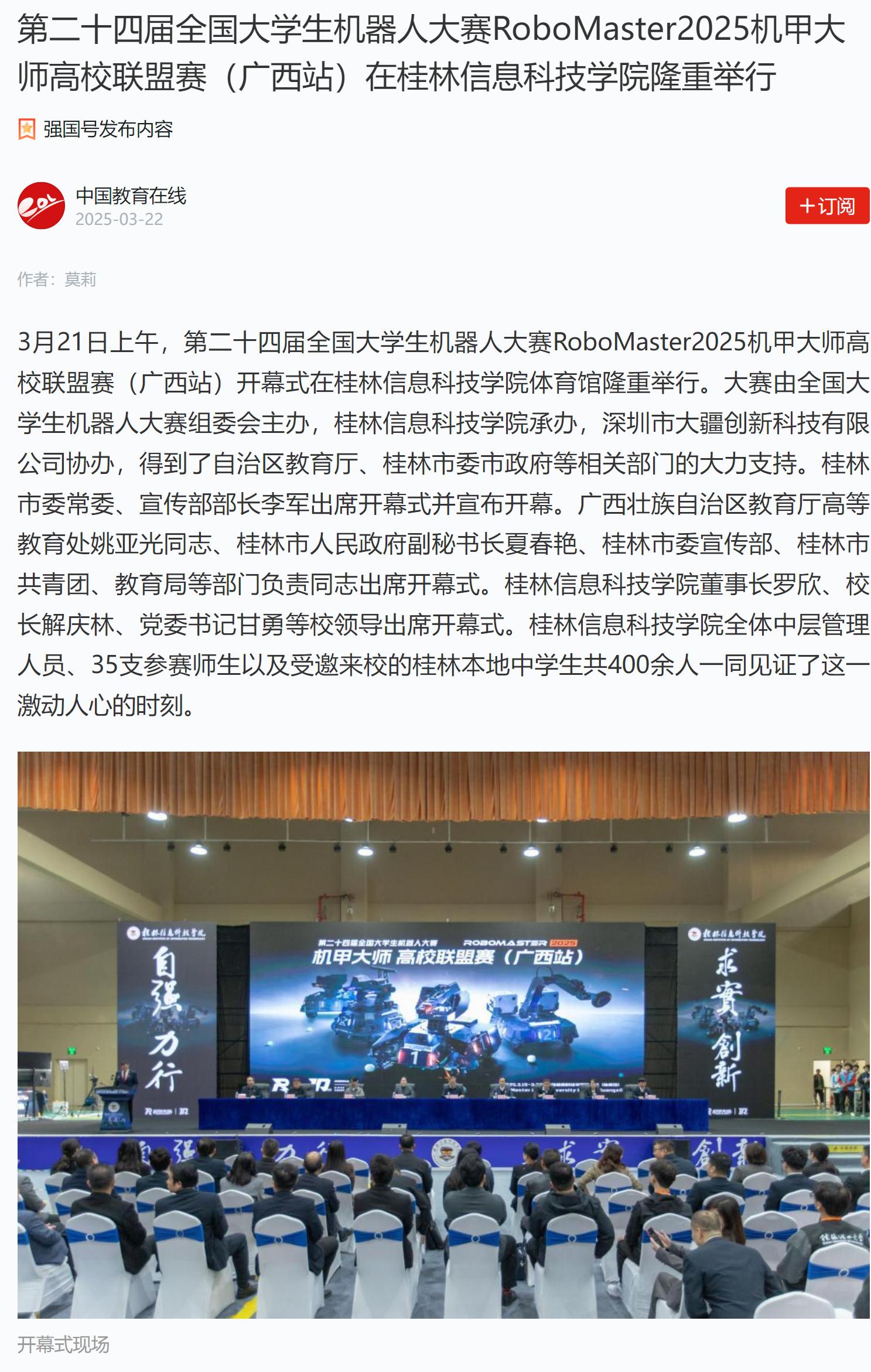 中国教育在线:第二十四届全国大学生机器人大赛RoboMaster2025机甲大师高校联盟赛(广西站)在beat365在线唯一官网隆重举行