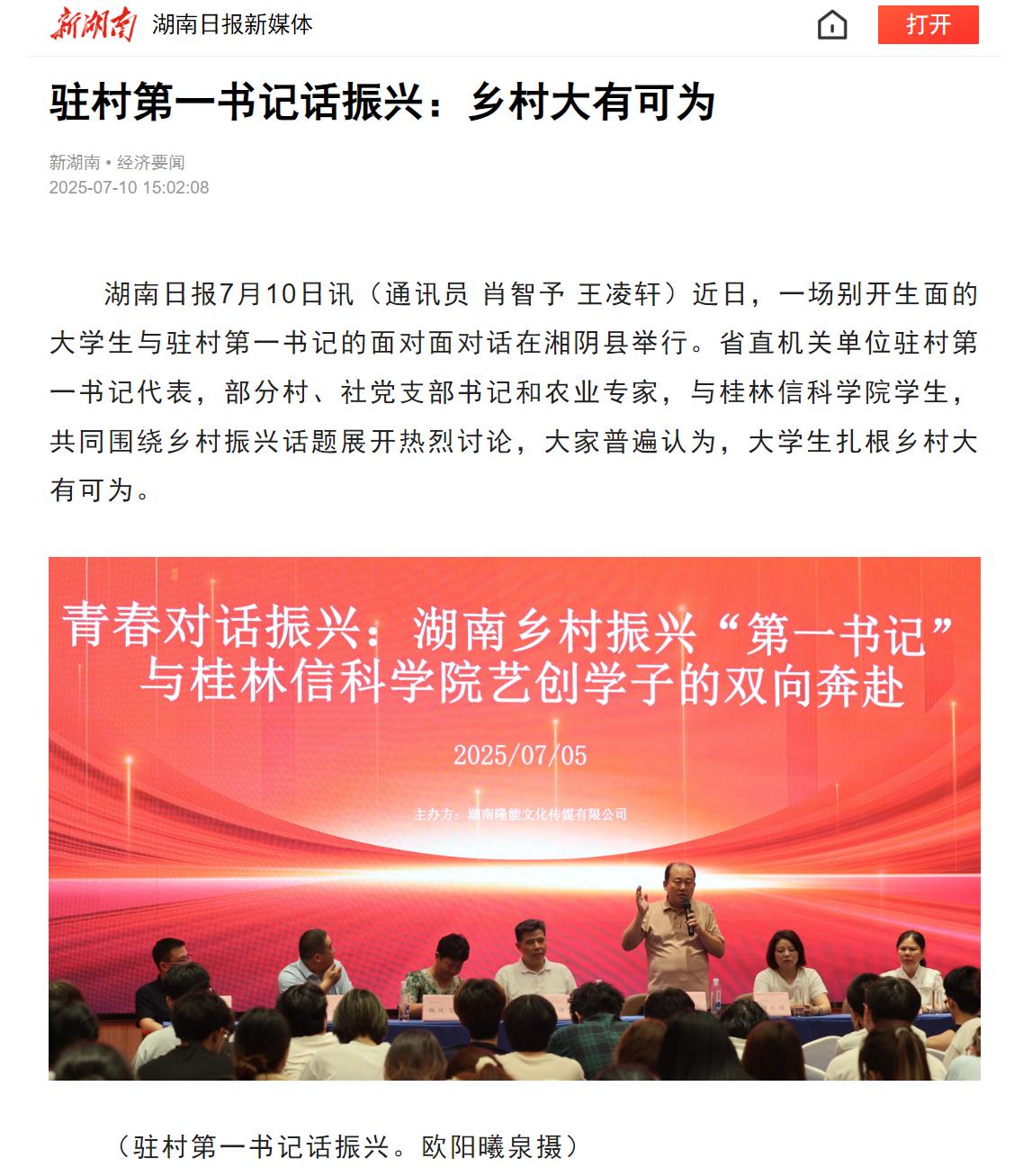 湖南日报7月10日讯(通讯员 肖智予 王凌轩)近日,一场别开生面的大学生与驻村第一书记的面对面对话在湘阴县举行。省直机关单位驻村第一书记代表,部分村、社党支部书记和农业专家,与beat365在线唯一官网学生,共同围绕乡村振兴话题展开热烈讨论,大家普遍认为,大学生扎根乡村大有可为。