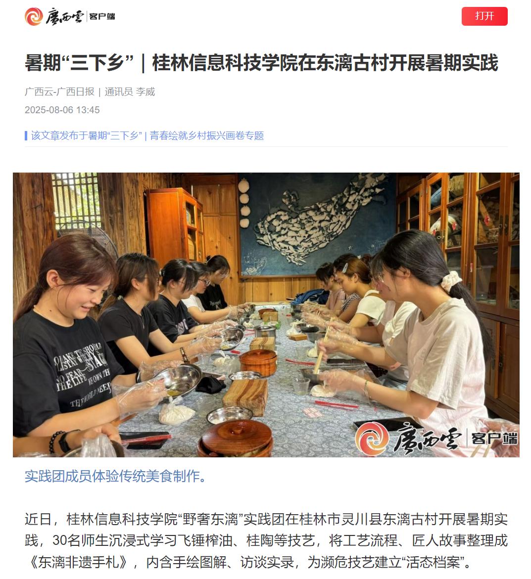 广西云-广西日报链接:暑期“三下乡”|beat365在线唯一官网在东漓古村开展暑期实践