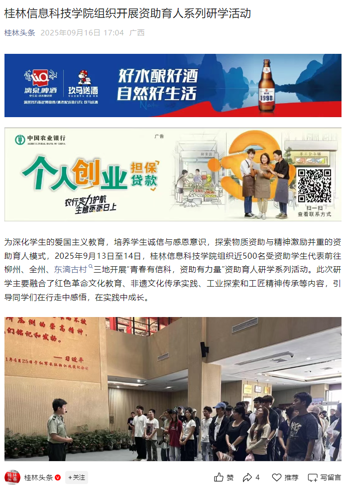 桂林头条链接:beat365在线唯一官网组织开展资助育人系列研学活动