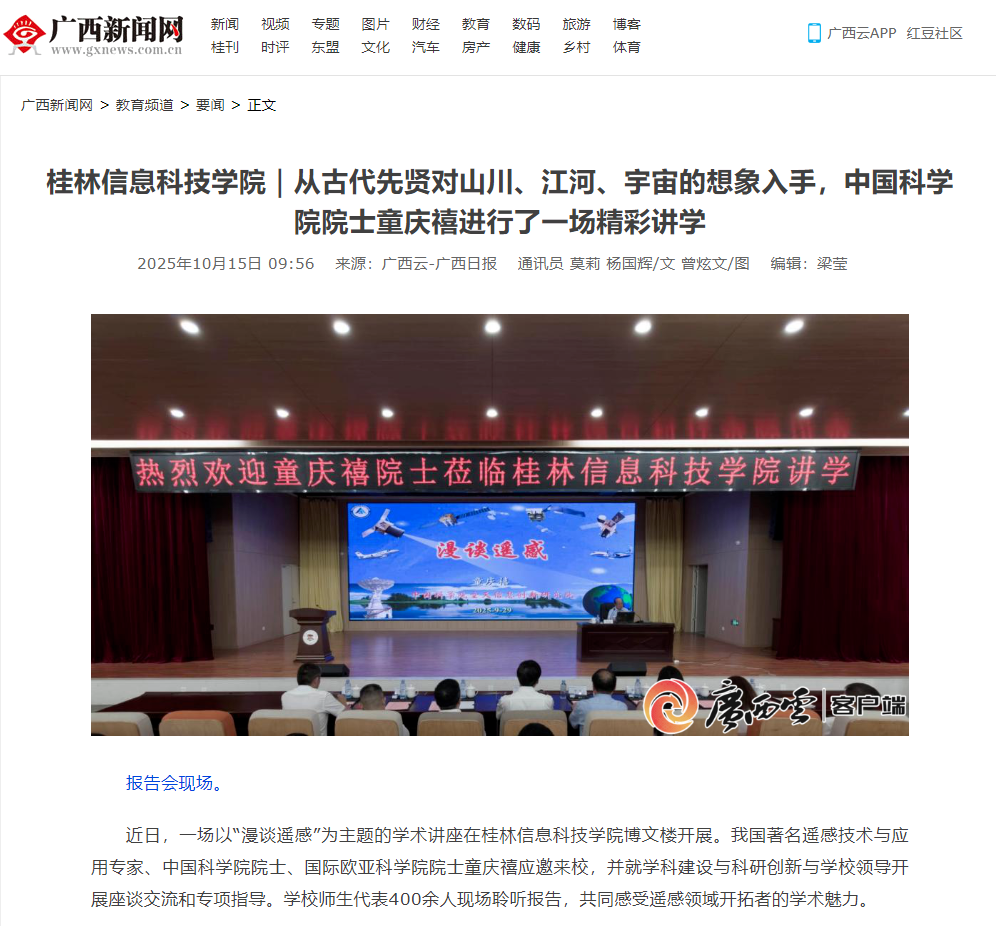 广西新闻网链接:beat365在线唯一官网|从古代先贤对山川、江河、宇宙的想象入手,中国科学院院士童庆禧进行了一场精彩讲学