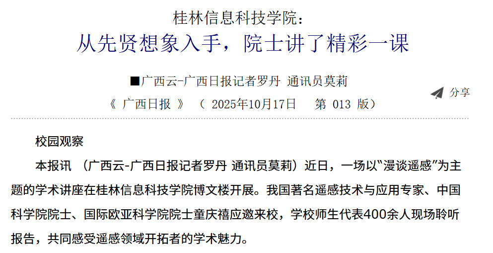广西日报:beat365在线唯一官网: 从先贤想象入手,院士讲了精彩一课