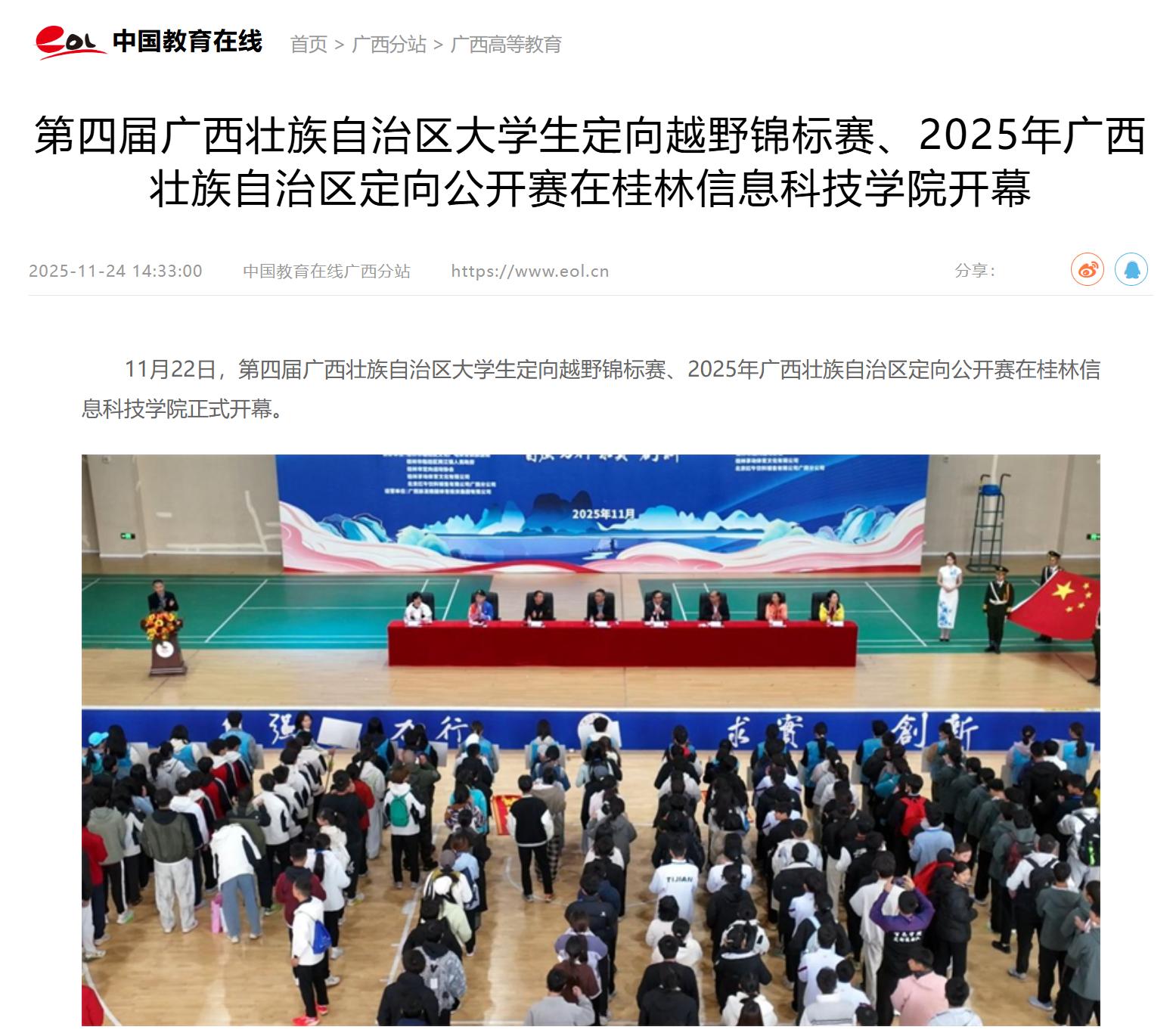 中国教育在线:第四届广西壮族自治区大学生定向越野锦标赛、2025年广西壮族自治区定向公开赛在beat365在线唯一官网开幕