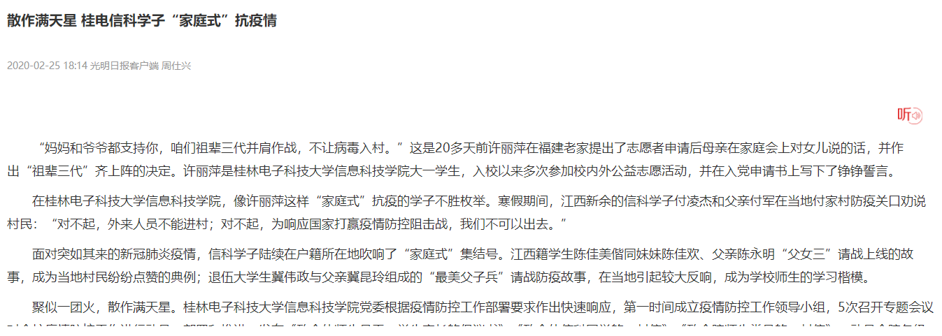 光明日报客户端:http://share.cloud.gmw.cn/yunmei-share/?shareTitle=%E6%95%A3%E4%BD%9C%E6%BB%A1%E5%A4%A9%E6%98%9F%20%20%E6%A1%82%E7%94%B5%E4%BF%A1%E7%A7%91%E5%AD%A6%E5%AD%90%E2%80%9C%E5%AE%B6%E5%BA%AD%E5%BC%8F%E2%80%9D%E6%8A%97%E7%96%AB%E6%83%85&shareImg=https://s.cloud.gmw.cn/2016/json/upload/resources/image/2016/12/13/6100070.png&shareDes=&sourceUrl=http://s.cloud.gmw.cn/gmrb/c/2020-02-25/1369517.shtml&articleId=1369517&token=5a53c5d93392dd5a5d3d54b82a37adab