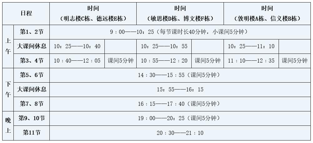 注:其他教学场所上下课时间参照敦明楼、信义楼上下课时间执行。