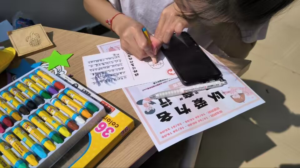 本次志愿活动开设了线下宣传与线上投票两种方式。活动期间心协志愿者们将在心协31107教室外的楼道进行活动宣传,对来往师生介绍本次活动目的并发放明信片,同时也会在线上开展明信片的投票活动,让更多的人可以参加到我们的活动当中。全校师生可以在明信片上写下他们想对留守儿童说的话,参与的师生可以将自己的作品在网上转发来参与评选,活动结束后可以获得与点赞数匹配的奖品。活动结束后,我们的志愿者会将本次活动回收的明信片同礼物一起寄到留守儿童手中,向留守儿童送去我们的关爱。