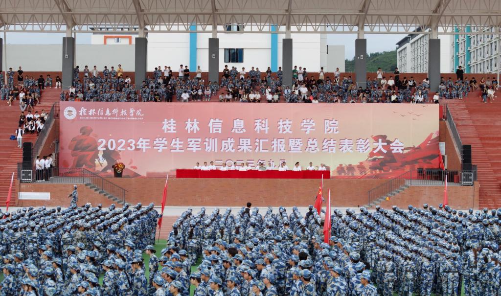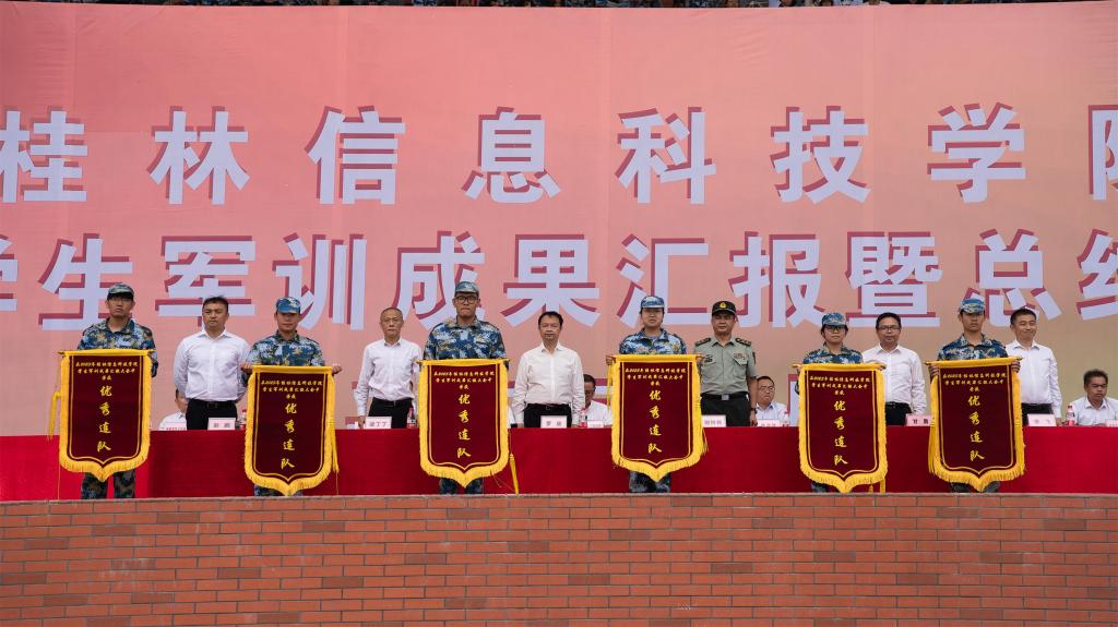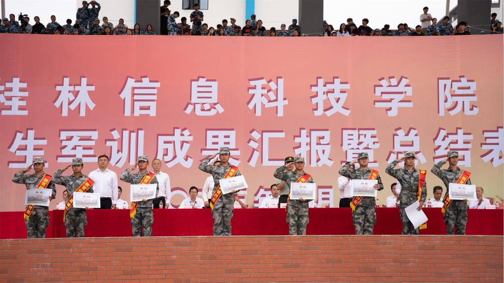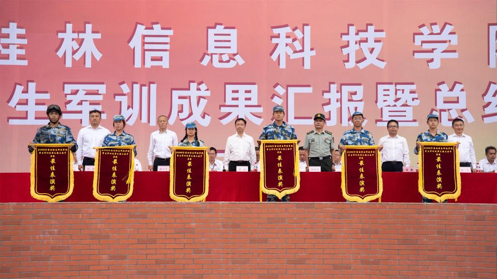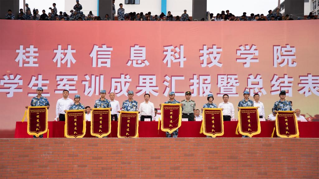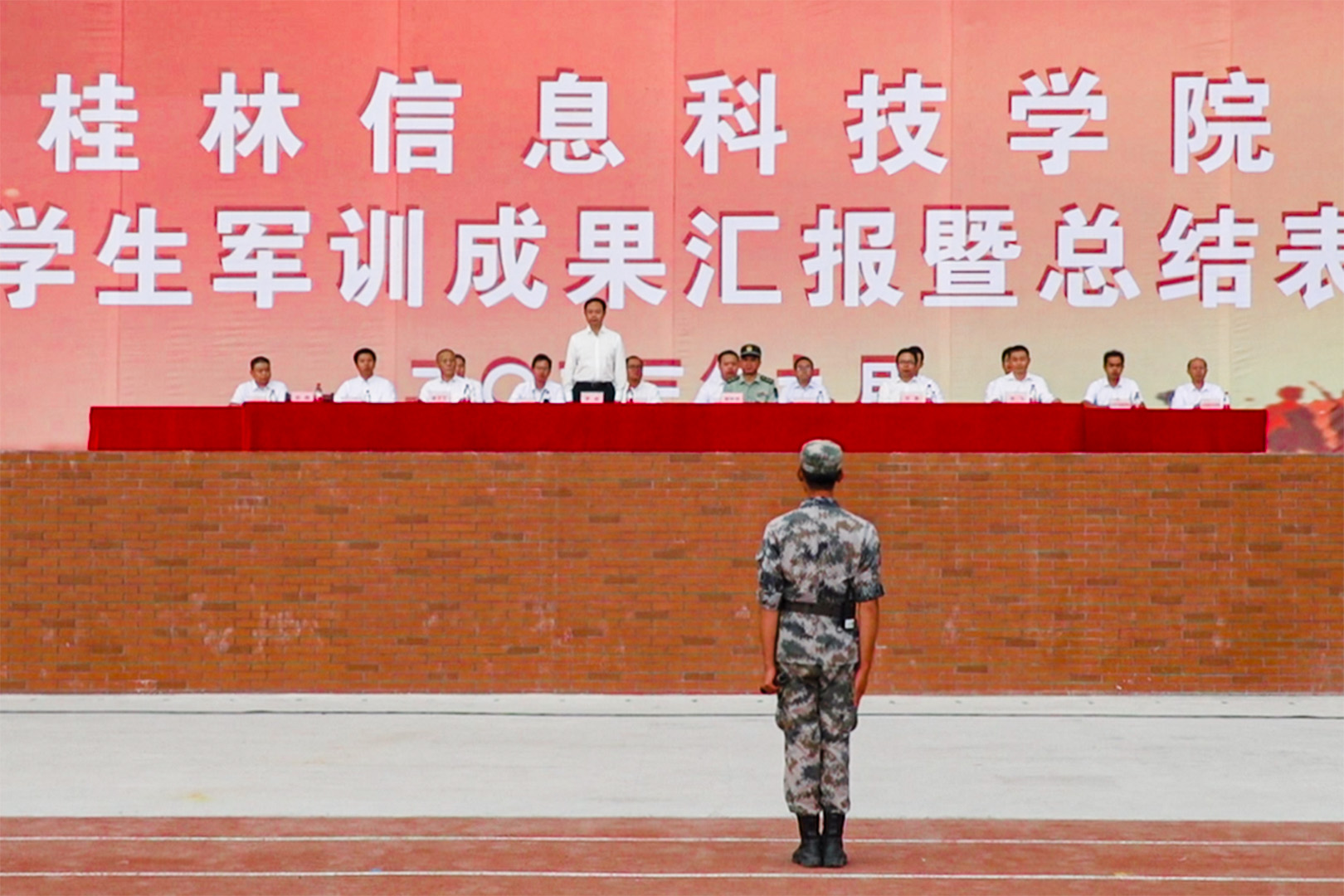 桂林警备区战备建设处参谋谢钟权中校检阅了beat365官网本次军训的成果并发表振奋人心的讲话。他指出,军训是青年大学生接受国防教育的基本形式,同学们以饱满的精神状态完成这次军训汇演感到非常振奋,充分展现了信科学子朝气蓬勃、奋发向上的精神风貌,也以实际行动展示了当代大学生的责任担当和团队协作。为把来自不易的军训成果运用到今后的学习生活中,谢钟全中校希望同学们做到“三个融入”。一是把勇争第一,吃苦耐劳的精神融入学习生活;二是把热爱集体,崇尚荣誉的观念融入学习生活;三是把服从命令,听从智慧,遵章守纪的思想融入学习生活。谢钟权强调,青年人是祖国的未来和希望,肩负着振兴中华的神圣使命;希望同学们继续发扬在军训中焕发出的好精神、好作风,主动担起社会主义建设者和接班人的责任,把军训成果转化为优良学风、优良作风,转化为爱国之心、报国之志。