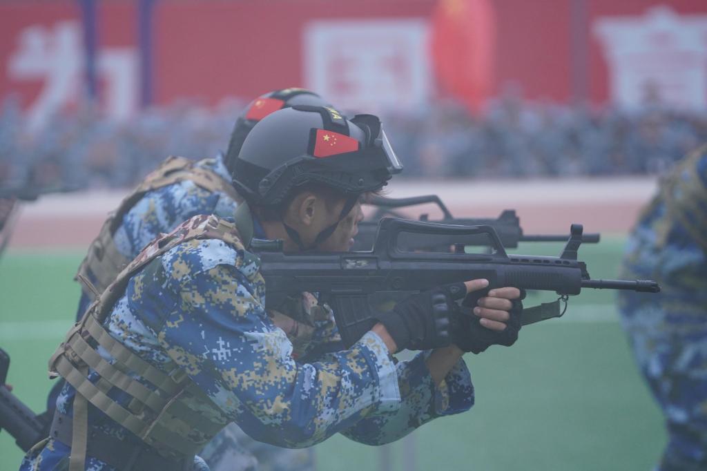 “拳术”方阵刚劲有力,展现了军体拳和擒敌拳的学习成果