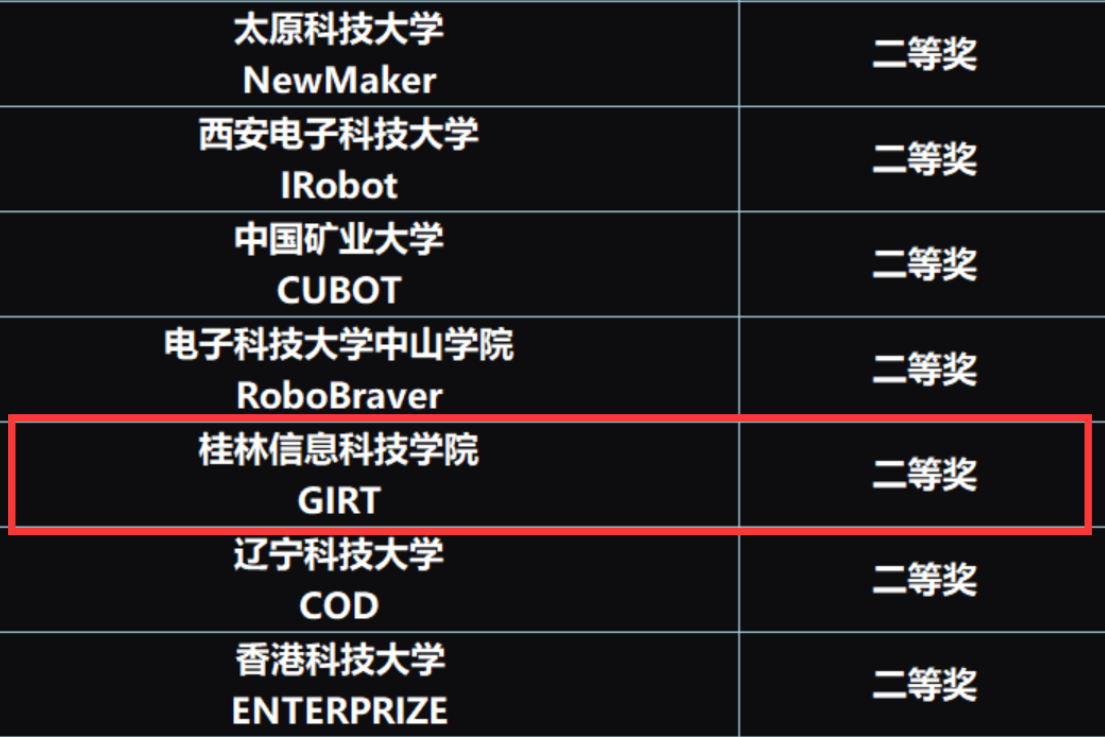 据悉,学校GIRT战队由beat365在线唯一官网GIRT机器人实验室成员组建,队员来自信息工程学院、机电工程学院、电子工程学院、创意设计学院等,全体队员更是假期留校专心备赛,在对机器一次次的迭代中追求极致,不断挑战自我,突破自我,充分展现了信科学子拼搏奋进的卓越风采。