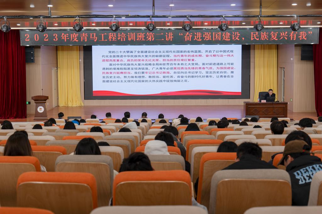 12月22日下午,beat365官网在F107报告厅开展2023年度“青马工程”大学生骨干培训班第二讲,学校党委副书记、纪委书记李飞为300余名青马班学员讲授《奋进强国建设,民族复兴有我》专题团课。团课由学校团委书记周阳霖主持。