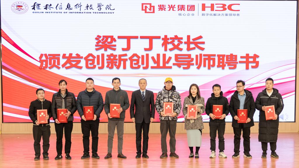 12月21日下午,学校第一届“新华三杯”校园科技文化月闭幕式在学校F107报告厅顺利举行。校长梁丁丁,副校长陈玲萍,党委副书记、纪委书记李飞,校长助理韩剑、彭鹏,新华三集团广西代表处副总经理李栋、王辉等企业及专家代表共同出席了本次闭幕式。各二级学院院长、创新创业导师等师生代表380人参加了本次闭幕式,闭幕式由校长助理韩剑主持。