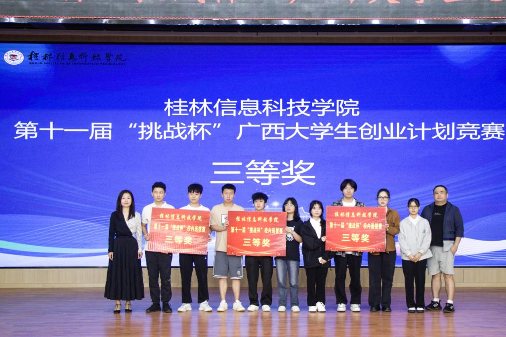 为引导和激励学生通过广泛的社会实践、深入的社会观察,激发创新精神,培育创业意识,提升创业能力,选拔出一批具有竞争力的优秀项目代表学校参加第十一届“挑战杯”广西大学生创业计划竞赛。4月26日,学校第十一届“挑战杯”广西大学生创业计划竞赛校内选拔赛在F107报告厅圆满落幕,此次比赛邀请到桂林奥创园总经理赵燕玲、桂林思佳途企业管理咨询有限公司总经理蒋斌、临桂正源商务信息咨询有限公司总经理唐中亮等一行5人担任大赛评委。学校副校长刘跃峰出席大赛开幕式,创意设计学院、校团委以及双创学院负责人、各二级学院团委书记参加活动。