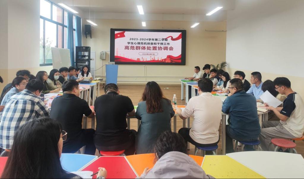 会上,各学院对本学期心理危机排查工作进行总结,并对存在高风险心理危机学生逐一呈报,与会各方共同研判心理危机学生的干预方法,结合学生具体情况提出有针对性、有效性的解决方案,防止恶性事件的发生。最后,党委学生工作部负责人周璇强调要高度重视学生心理筛查工作,严格工作规范,提高筛查效力,切实提高辅导员队伍的心理素质能力和服务学生水平,确保学生心理安全稳定。