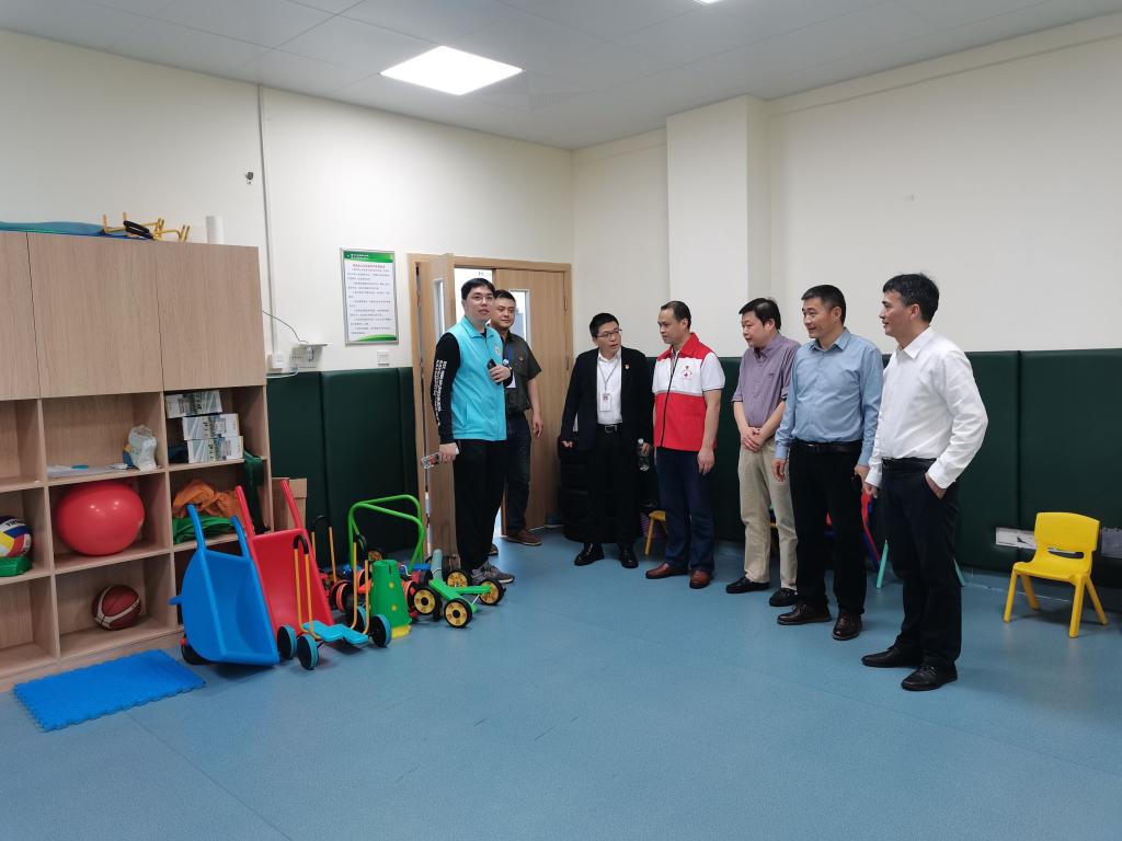 仪式结束后,beat365官网成功立项的广西区红十字会第七期志愿服务项目《心益童行——自闭症儿童关爱服务》正式启动。桂林市社会福利医院刘军院长带领参会领导参观了儿童孤独症康复中心并简要介绍了中心建设概况,三方就医校地合作开展事宜及具体帮扶需求展开了深入交流。大学生心理健康志愿者协会的同学们也在桂林市社会福利医院儿童孤独症康复中心老师的专业指导下,与自闭症儿童及家长友好互动,深入了解自闭症儿童的心理和行为特点,增强了志愿服务能力。