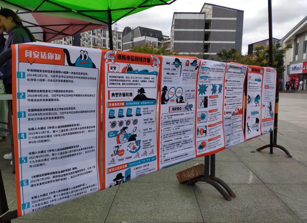 信息中心通过广场集中宣传、设置宣传展板、视频滚动播放等方式,向学校师生普及网络安全知识,提高每位师生辨别网络诈骗、应对网络安全事件的能力,让师生对网络安全有了更多的认识。
