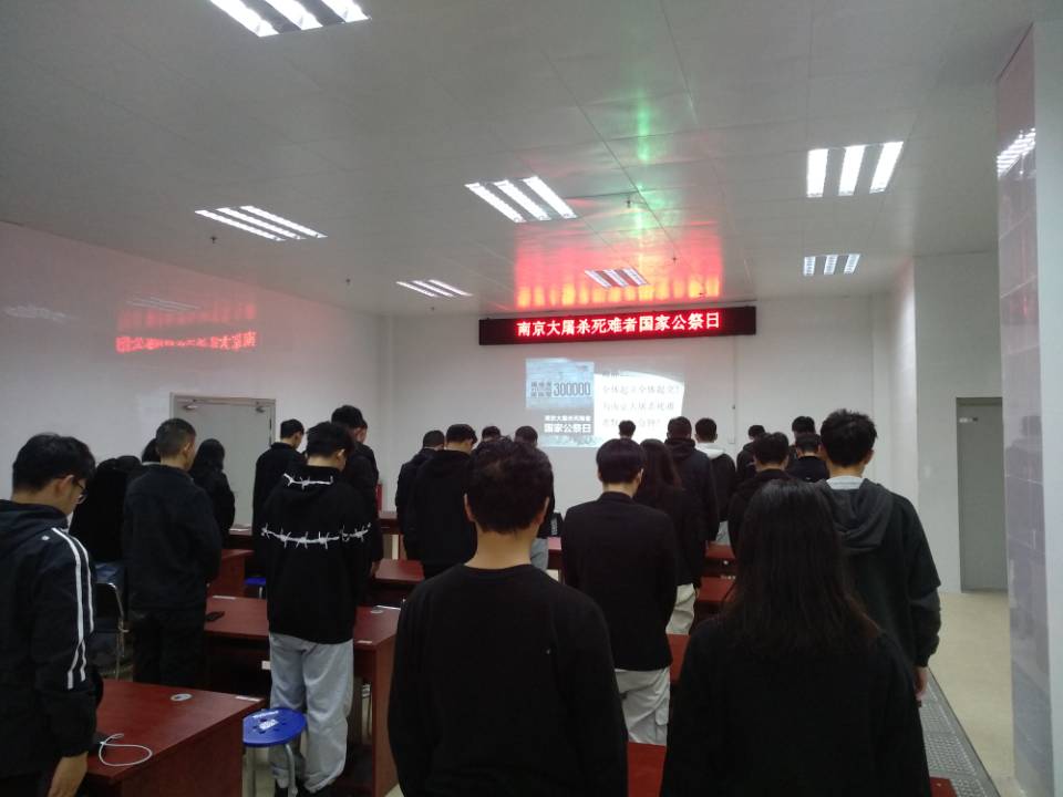 活动开始全体参会人员默哀一分钟。随后李阳阳老师带领大家跟随PPT重温那段屈辱的历史,明白国家公祭日的意义;观看视频,在抗战老兵的痛苦记忆中了解南京大屠杀的真相。辅导员李阳阳强调同学们要培养国家意识,也提醒每一位同学不能忘记历史,勿忘国耻,矢志前行。