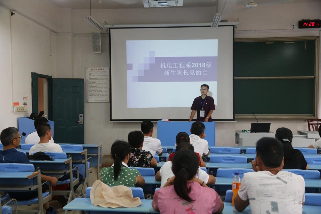 2018年9月5日下午两点,机电工程系在11104教室召开了2018级新生家长见面会。机电工程系刘跃峰主任、党总支庄璧瑛书记、刘朝福副主任出席了此次见面会。