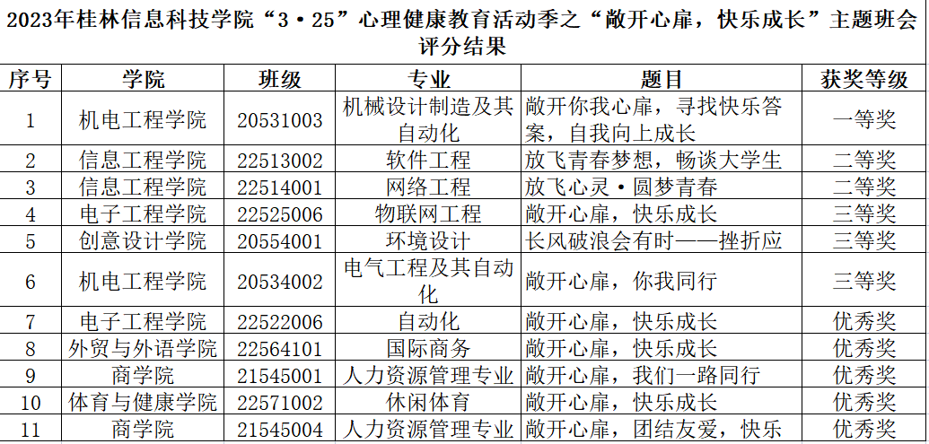 为了教育引导大学生树立团结友爱、互帮互助、携手共进的意识,与培育大学生自尊自信、理性平和、积极向上的健康心态,学校于2023年5月-6月12日期间在全校范围内开展“ 敞开心扉,快乐成长”主题班会评比活动,本次活动由beat365官网大学生心理健康教育与咨询中心主办,由机电工程学院承办。