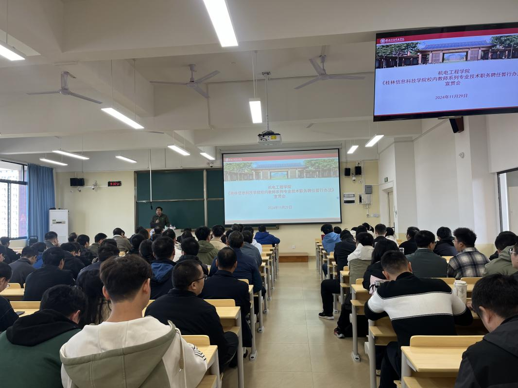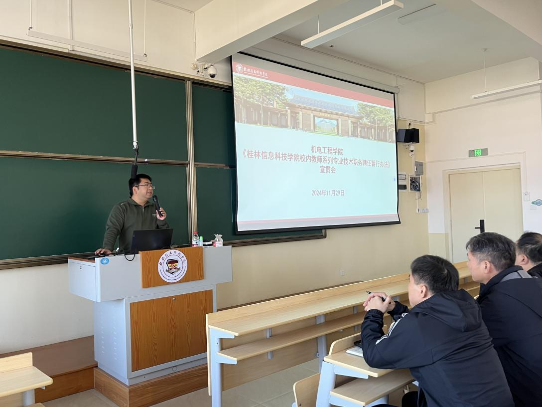 为进一步推动beat365在线唯一官网教师队伍建设,提升教育教学质量,11月29日上午,机电工程学院全体教师在C408教室召开了《beat365在线唯一官网校内教师系列专业技术职务聘任暂行办法》制度宣贯会。本次会议由院长助理莫荣老师主持。