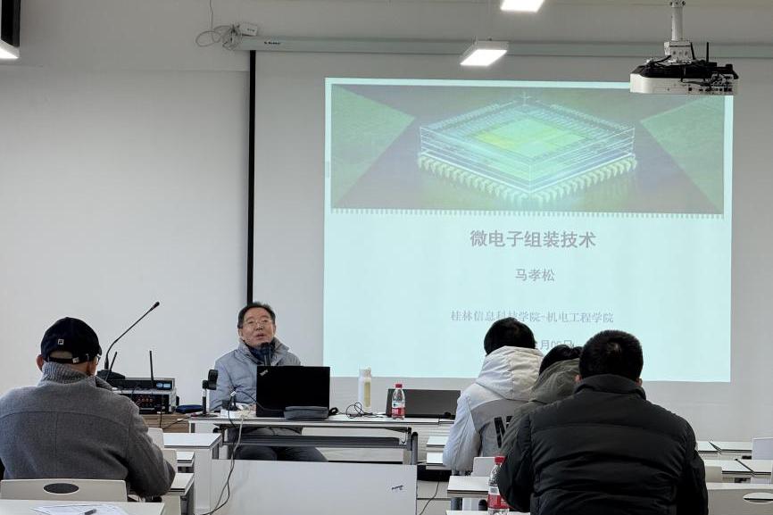 1月9日上午,机电工程学院在J708教室成功举办了一场聚焦现代电子制造核心技术的专题学术讲座。本次讲座的主题为“微电子组装技术与设备前沿进展”,由微电子领域专家马孝松教授主讲。马教授系统梳理了微电子组装技术的发展历程、关键技术原理及核心装备现状,为我院教师及相关专业研究者呈现了一场涵盖理论与工程应用的综合性学术报告,助力青年教师教学与科研。
