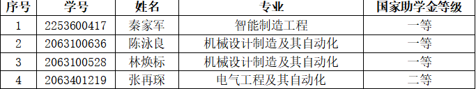 2022—2023学年机电工程学院国家助学金第五批拟名单公示