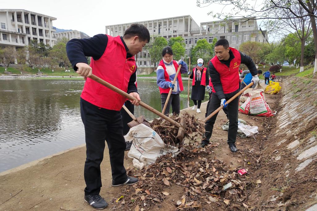 在活动过程中,党员同志们分工明确,对学校人工湖旁及周边树林的落叶、树枝、碎石和垃圾等进行清理打扫,校园卫生环境焕然一新。党员同志们热情高涨、细心负责,展现了团结协作、互帮互助的精神,并纷纷表示,将继续秉承全心全意为老师和学生们服务的态度,努力做一名教书育人、立德树人的新时代高校教师。