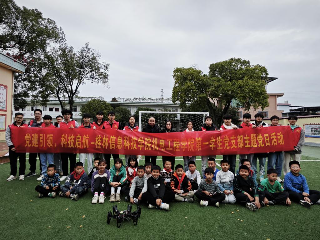 为深入学习贯彻习近平新时代中国特色社会主义思想,充分发挥学校服务桂林基础教育科技示范作用。12月12日,机电工程学院第一学生党支部赴桂林市龙门中心校开展“党建引领,科技启航”党日活动。活动由支部书记严继玲主持。