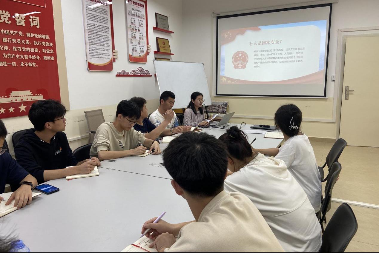 4月25日,机电工程学院第一学生党支部在德远楼E512召开"增强国家安全意识,共同维护国家安全"主题教育大会,支部全体党员参加了学习,共话国家安全使命。