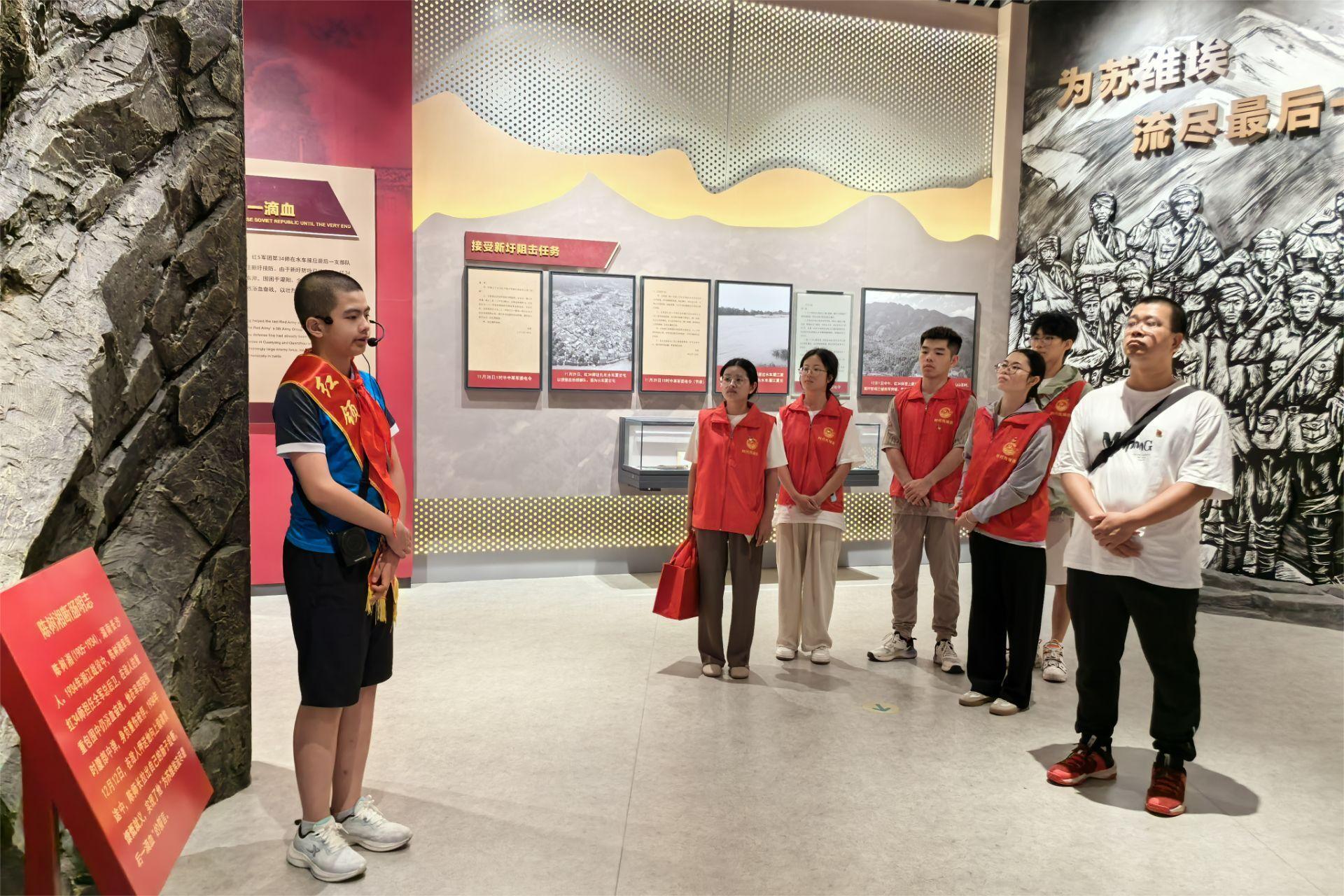 活动中,师生党员抵达兴安县光华铺阻击战旧址,讲解员结合图表、文物、影像等形式生动详细地为师生党员们讲解了那段悲壮历史。一个个真实感人故事,让师生党员们切身感受革命先烈英勇不屈、不怕牺牲的革命精神;随后,师生党员参观了凤凰渡口遗址、大坪渡口遗址,深刻领会到红军不怕牺牲的战斗精神和充分体现了大无畏的家国情怀;最后,师生党员来到了位于灌阳的湘江战役新圩阻击战酒海井红军纪念园,在讲解员的讲解下,师生党员们再次感悟了红军们矢志不渝跟党走的坚定信仰,并重温入党誓词。