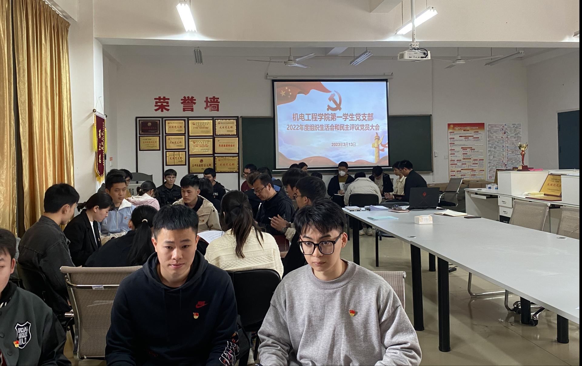 为深入学习贯彻党的二十大精神,严格党内政治生活,提升基层党组织战斗力,3月13日,机电工程学院第一学生党支部在11311会议室召开2022年度组织生活会暨民主评议党员大会。会议以“深入学习贯彻党的二十大精神,强化党性修养,提升支部战斗力”为主题,支部全体党员参加了会议,会议由支部书记严继玲主持。