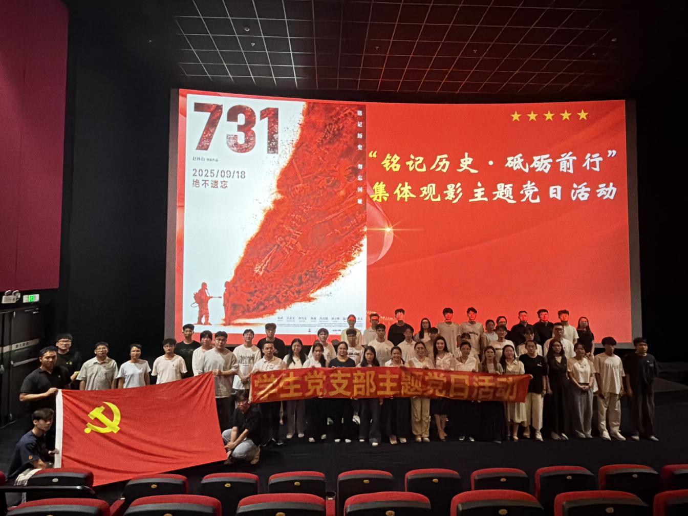 为深化爱国主义教育,传承红色基因,在九一八事变纪念日后、国庆前夕的特殊节点,机电工程学院第五学生党支部于9月28日参与开展“铭记历史,砥砺前行”集体观影主题党日活动,集中观看历史题材影片《731》,通过光影回顾沉痛历史,引导党员筑牢勿忘国耻、振兴中华的坚定信念。
