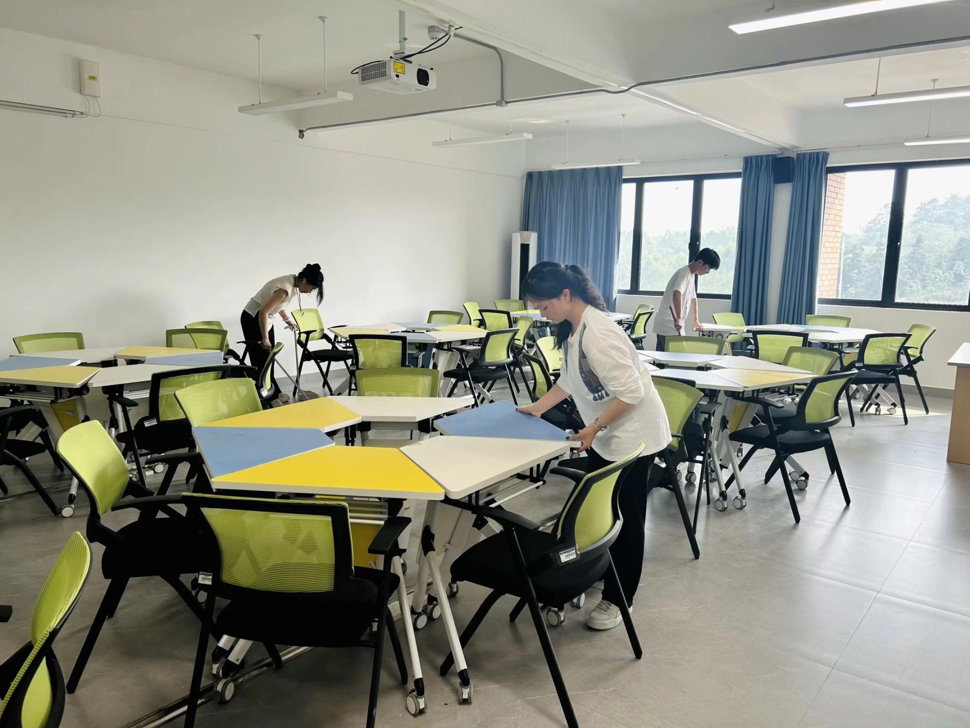 在负责老师的统筹安排下,同学们分工协作,对产教融合中心的教室进行了全面清洁与整理。大家有的认真擦拭黑板,有的仔细摆放桌椅,教室内的物品整齐划一,营造出良好的学习氛围;还有的手持扫帚、拖把,仔细清扫地面、清洁角落,不放过任何一处灰尘与杂物。