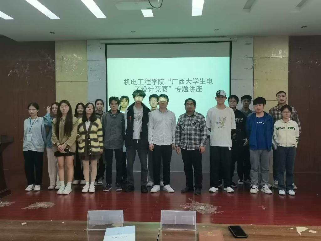 为了培养学生创新精神、提高解决问题能力、鼓励学生报名广西大学生电子设计竞赛,机电工程协会于2023年4月12日下午1时,在21201教室隆重举行了“广西大学生电子设计竞赛”专题讲座,并有幸邀请到了机电工程学院优秀教师—莫荣老师和罗冬华老师作为本次讲座的主讲教师,参与本次专题讲座的主要对象为机电工程学院21、22级学生。