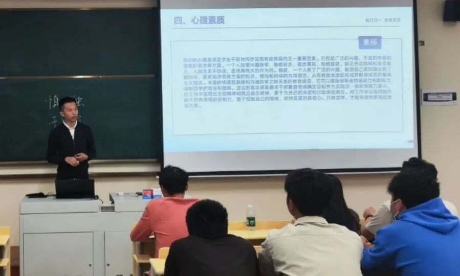 胡平华老师围绕“素质能力”与“兼顾成长”两个主题对参会学生进行指导。着重解释“干部”二字的具体含义,强调学生干部作为协会活动的组织者和领导者,必须具备较高的政治觉悟与思想品质。从“开阔视野”、“对标榜样”、“持续激活”、“全面兼顾”这四个方面对参会学生作出具体要求并寄予殷切期望。