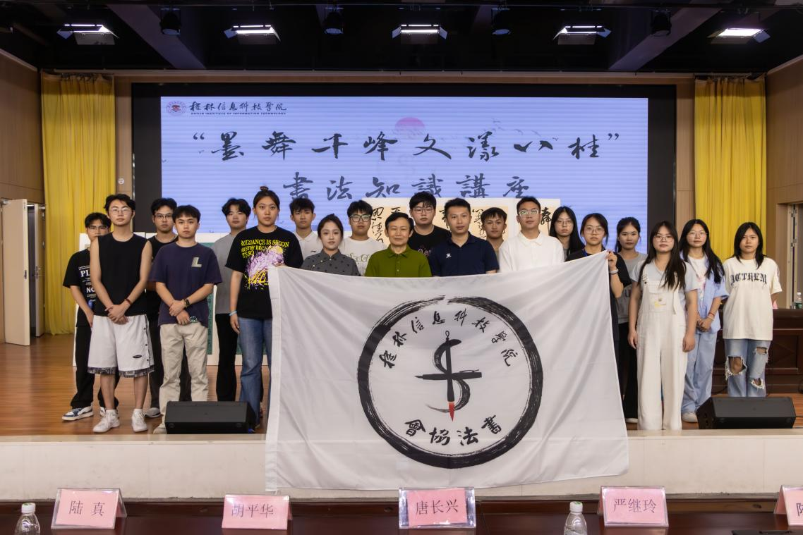 上午,广西师范大学唐长兴教授在报告厅F107 开展《书法学习中的基本功 “密码”》主题讲座。机电工程学院党委副书记严继玲致辞强调美育对人才培养的重要性。唐长兴教授讲解书法基本功要点,在互动环节解答了学生关于挑选毛笔的问题。