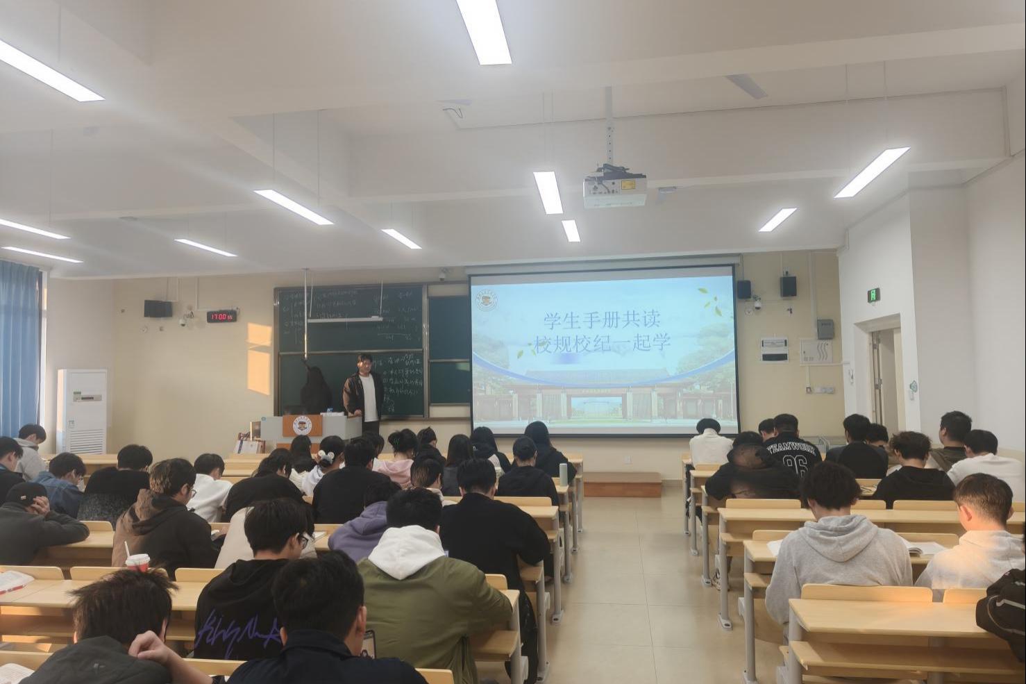 建立机制,长效护航。学院将以此次专题学习为起点,构建规章制度教育长效机制:将《学生手册》学习纳入新生入学教育考核环节;设立“规章制度答疑驿站”,持续为新生解惑;结合学风建设月、安全教育周等重要节点,开展常态化宣传教育;通过定期检查与走访,关注新生制度遵守情况,及时引导和纠正。