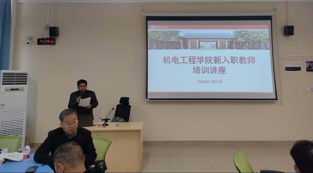 为了助力新入职教师尽快适应高校教学工作岗位需要,切实增强立德树人使命感荣誉感,提升高校新入职教师教学能力和业务水平,更好地履行高校教师岗位职责,11月27日下午,机电工程学院于C103举办了一场专题培训讲座,讲座主题为“课堂教学细节之一—语言、语音和语速。此次讲座由曾斌教授主持,旨在帮助教师们更好地掌握语言表达、语音控制和语速调整的技巧,从而提高课堂互动和教学效果。