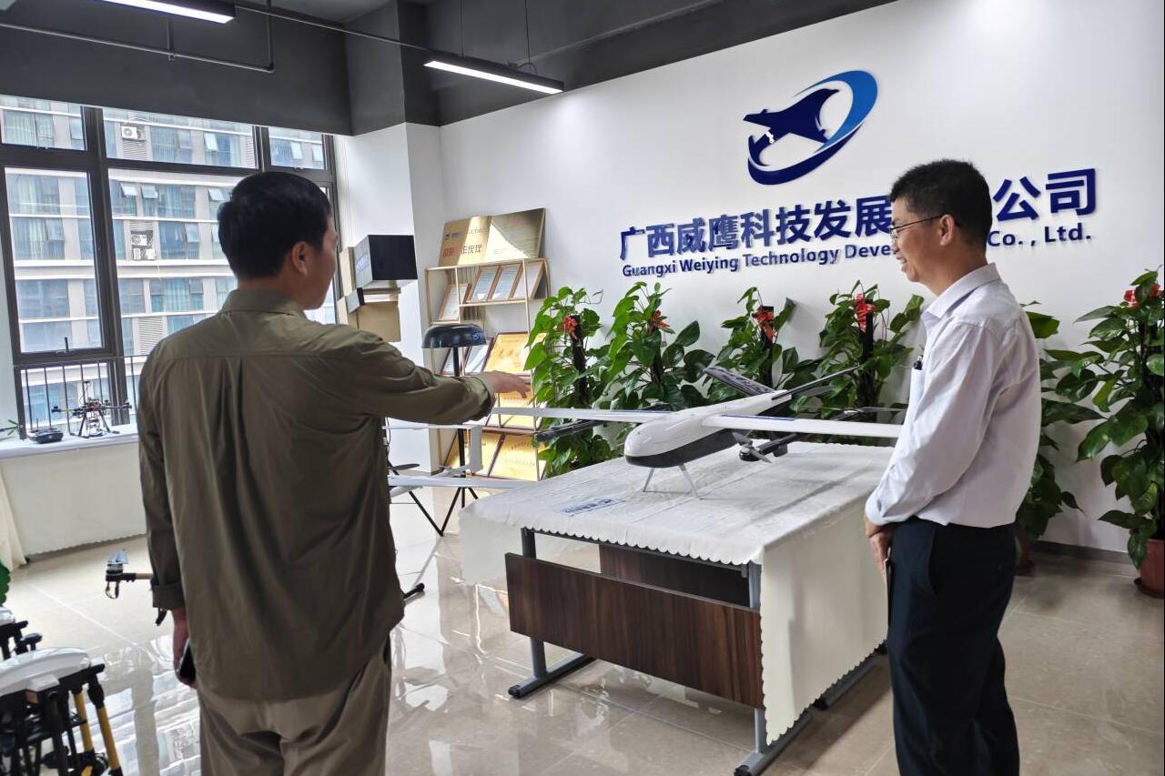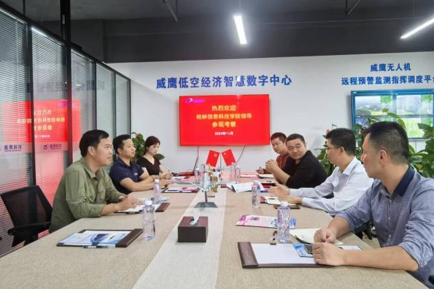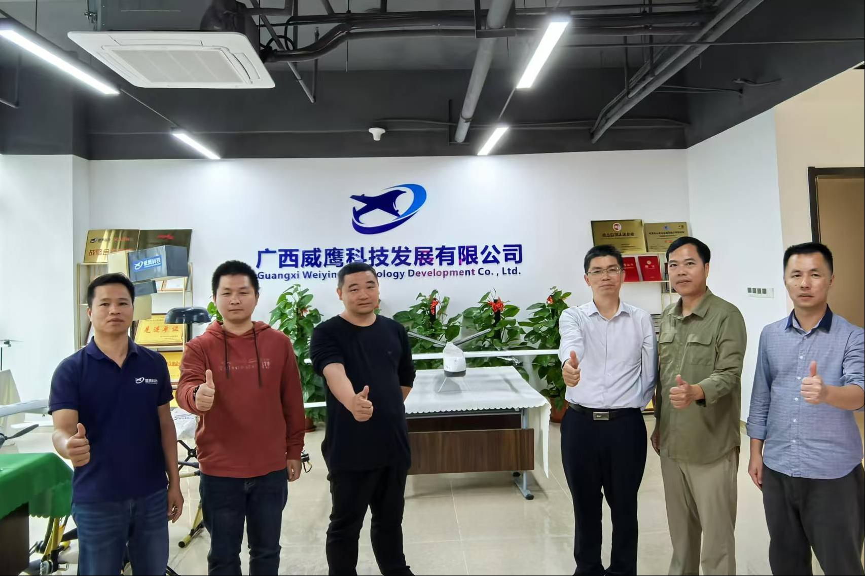 调研团队一行受到公司的热烈欢迎,在公司创始人兼总经理陆电学的陪同下参观了企业展厅及办公场所,详细了解了公司在在无人机电力巡检、无人机驾驶培训、军警无人机内训、应急测绘等方面的产品及业务情况。交流会上,广西威鹰科技发展有限公司总经理陆电学从公司发展历程、团队构成、产品及业务等方面对公司进行详细介绍。刘朝福教授向广西威鹰科技发展有限公司介绍了beat365官网发展情况及本次调研活动的主要目的,希望从专业课设置、实训基地建设、人才培养等方面借鉴企业发展中的宝贵经验和需求,共同推进校企双方在无人机相关专业发展中的合作。
