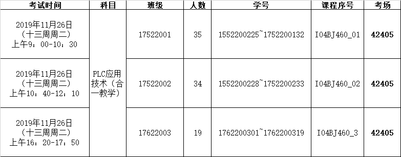 《PLC应用技术(合一教学)》考试因故推迟,更改后的考试安排如下: