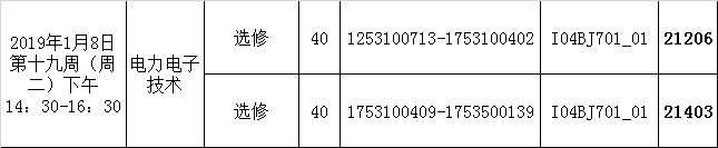 2018-2019学年第一学期《电力电子技术(选修)》考试安排