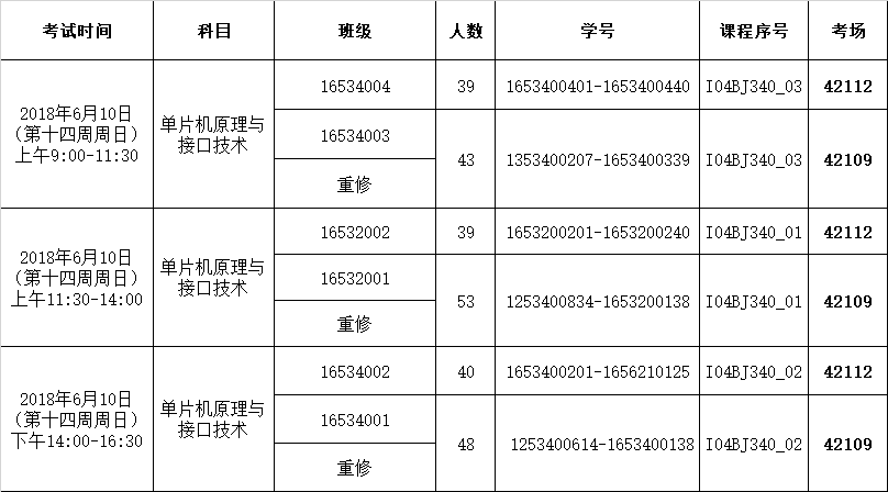 关于更改《单片机原理与接口技术》考试安排的通知